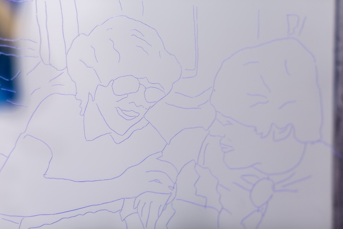 Owen G. Parry, "Larry!Hieroglyfics", 2016. Sztych na pleksiglasie (detal).