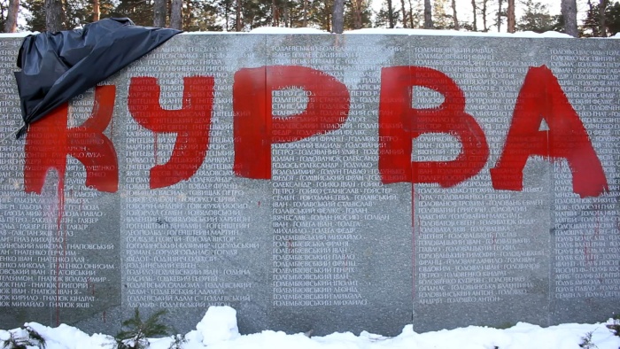 Zniszczenia na Polskim Cmentarzu Wojennym w Bykowni, 2017. Zdjęcie: Kseniya Marchenko